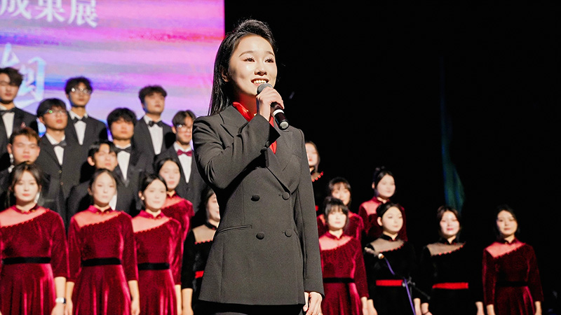 下半场的混声合唱更是将氛围推向高潮:《这世界那么多人》里满是对相遇的珍惜,原创作品《我想》唱出了学子对未来的憧憬,《绒花》的深情里藏着对奉献的敬意,而最后一曲《领航》,则让全场的温暖与力量凝成了一股暖流,尾声《走出教室的思政课》更是将美育与思政的融合落到了人心深处。