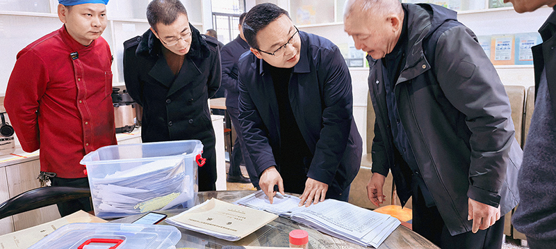 廖柏林一行先后到李子园校区教工食堂、思源食堂、学生宿舍、在建工地,七里坪校区溢香教工食堂、溢香学生食堂、明德楼南栋等区域实地检查,重点查看食堂就餐环境、后厨卫生、食材仓储、成品留样、学生宿舍住宿条件、工地安全文明施工等。