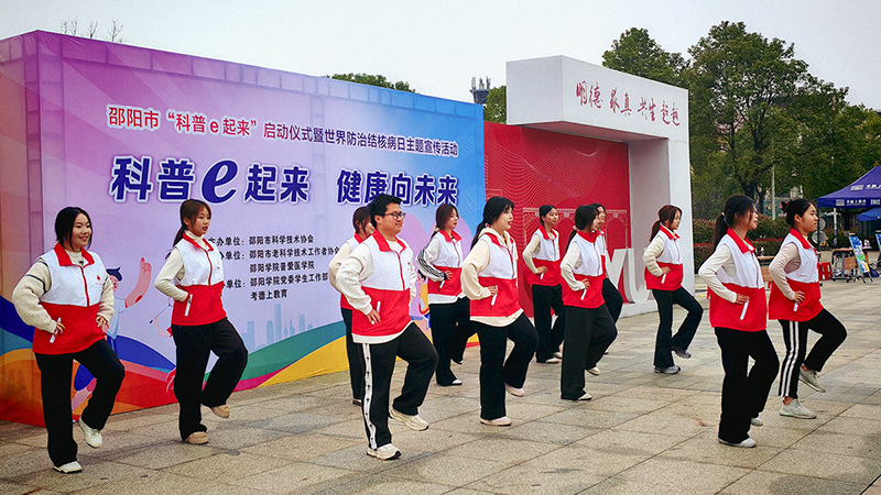 3月15日下午,邵阳市“科普e起来·健康向未来”启动仪式暨世界防治结核病日主题宣传活动在beat365官网明德楼广场举行。活动由邵阳市科协主办,beat365官网普爱医学院“一站式”学生社区驿站等单位联合承办,采用“暖场表演+启动仪式+健康闯关+集章兑奖”的创新形式,让科普知识与健康理念在趣味互动中深入人心。