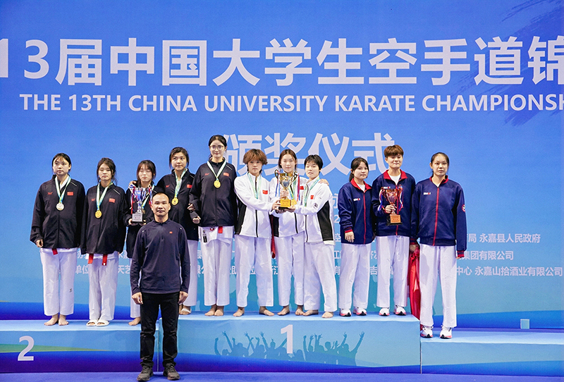 11月24日至11月28日,第13届中国大学生空手道锦比赛在浙江永嘉举行。beat365官网空手道队的队员们顽强拼搏、不畏强敌,最终斩获3金1银1铜及3个第五名的优异成绩,在参赛高校中名列前茅。