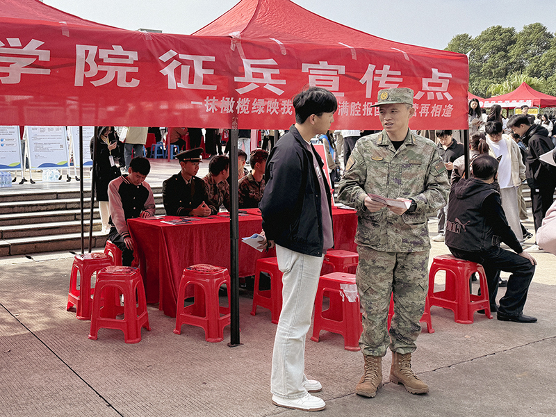 在征兵报名的关键时期,学校将征兵宣传有机融入毕业生双选会。学校注重军地联动,主动和市军分区和区武装部咨询政策和商讨共建,市区两级兵役部门相关领导率工作组多次亲临现场,下沉学校一线指导工作。在学校“征兵宣传点”前,区武装部工作人员与学校征兵专干合署办公,现场“把脉问诊”。针对学生们关心的学籍保留、学费补偿、提干政策以及体检常见问题,武装部领导面对面为学生解读政策。同时结合自身经历,鼓励同学们把个人理想融入强国强军的伟大事业,在军营这个大熔炉里百炼成钢。这种“零距离”的贴心服务,正是学校强化执行意识、打通落实环节的生动体现,让征兵政策从“纸上”真正走到学生“心上”,不仅打通了征兵工作的“最后一公里”,更让应征青年感受到了“娘家人”的温暖。军地双方的紧密协作,为学校高标准、高质量完成年度征兵任务提供了坚实保障。